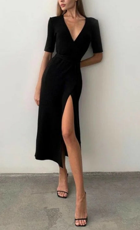 Sexy Half Sleeve Dress Evening Prom Dress With Slit