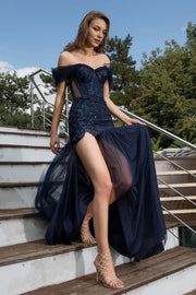 Stores With Prom Dresses Off-the-shoulder Tulle And Lace Evening Dress With Hand-sewn Formal Wear Dresses With Hight Slit - US 2 / UK 6 / EU 32