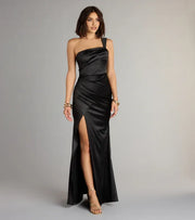weitese's Step into elegance with this black satin maxi dress. It features a one - shoulder design that adds a touch of sophistication, ruched detailing that enhances your figure, and a high side slit for graceful movement. The smooth satin fabric drapes beautifully, creating a flattering silhouette. Perfect for formal events, weddings, or any special occasion where you want to showcase style and confidence.