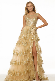This Weitese dress boasts a sweetheart neckline, round neck, and sleeveless design, accented with ruffle details and multiple layers for a stunning, floor-length appearance. Perfect for prom or formal events, it offers both style and comfort for an elegant evening.