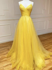 Weitese Formal Women's Dresses A Line V Neck Backless Yellow Long Prom Dresses Open Back Yellow Long Formal Evening Dresses Prom Dresses Stores