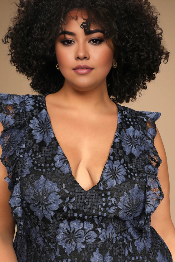 Weitese Formal Women's Dresses Deep V Neck Navy Blue Lace Ruffled Tiered Sleeveless Maxi Dress Prom Dress Stores