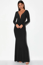 Weitese Formal Women's Dresses Glamorous in Glitter Black Long Sleeve Backless Maxi Dress Prom Dress Shops - US 2 / UK 6 / EU 32