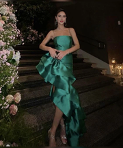 Weitese Formal Women's Dresses Green Spaghetti Straps Asymmetrical Prom Dress with Ruffles Prom Dress Stores