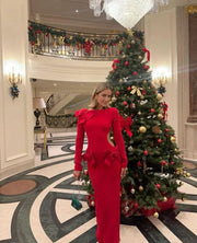 Weitese Formal Women's Dresses Red Long Sleeves Backless Long Party Dress Prom Dress Stores