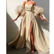 Weitese Formal Women's Dresses Shimmer Light Champagne A Line Long Evening Dress Removable Puff Sleeves Sweetheart Prom Dresses Stores