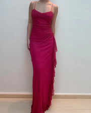 Weitese Formal Women's Dresses Spaghetti Straps Rose Red Sheath Ruffled Long Prom Dresses Prom Dresses Stores - US 2 / UK 6 / EU 32