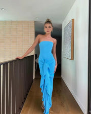 Weitese Formal Women's Dresses Strapless Blue Sheath Ruffled Prom Dress Prom Dresses Stores