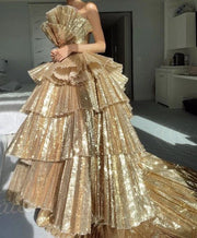Weitese Formal Women's Dresses Stylish Golden Tiered Ball Gown Long Evening Party Dress Prom Dresses Stores