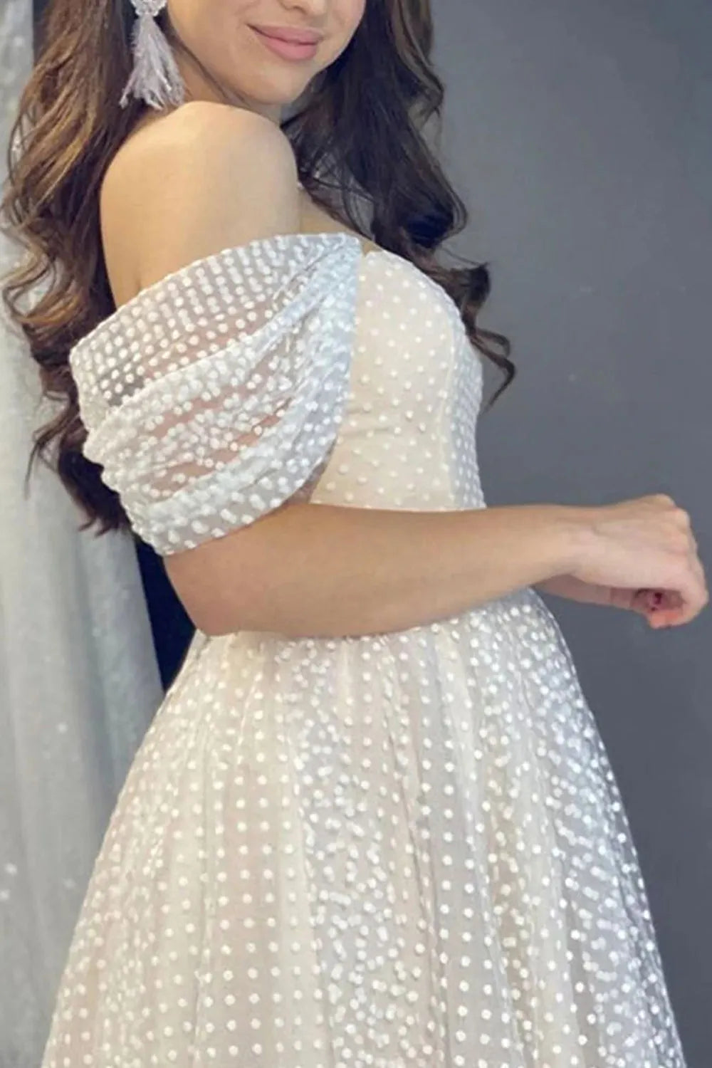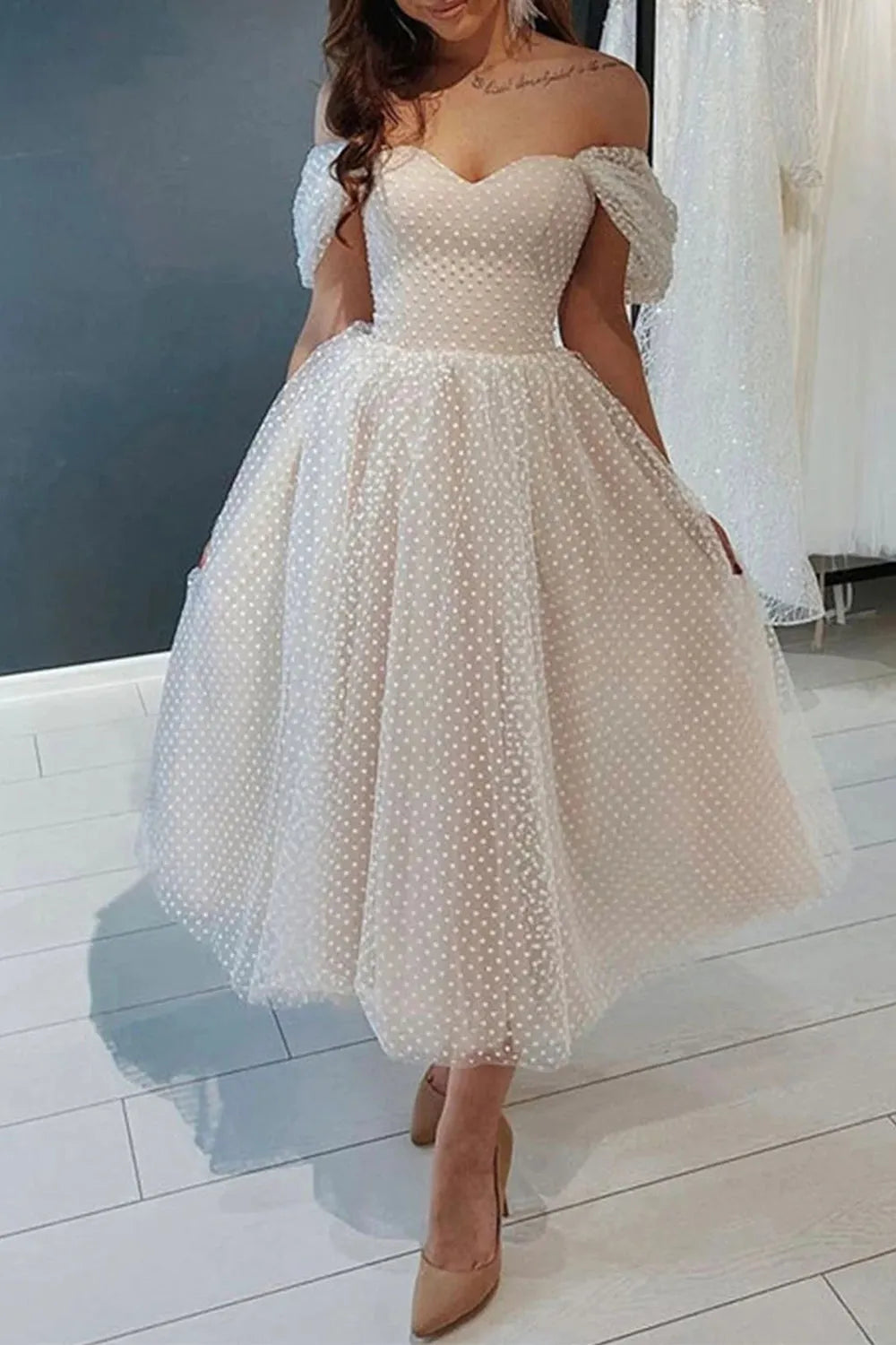 Weitese Prom Dress Store Princess A Line Off the Shoulder Ivory Tea Length Homecoming Dress Prom Dress Formal Women's Dresses - US 2 / UK 6 / EU 32