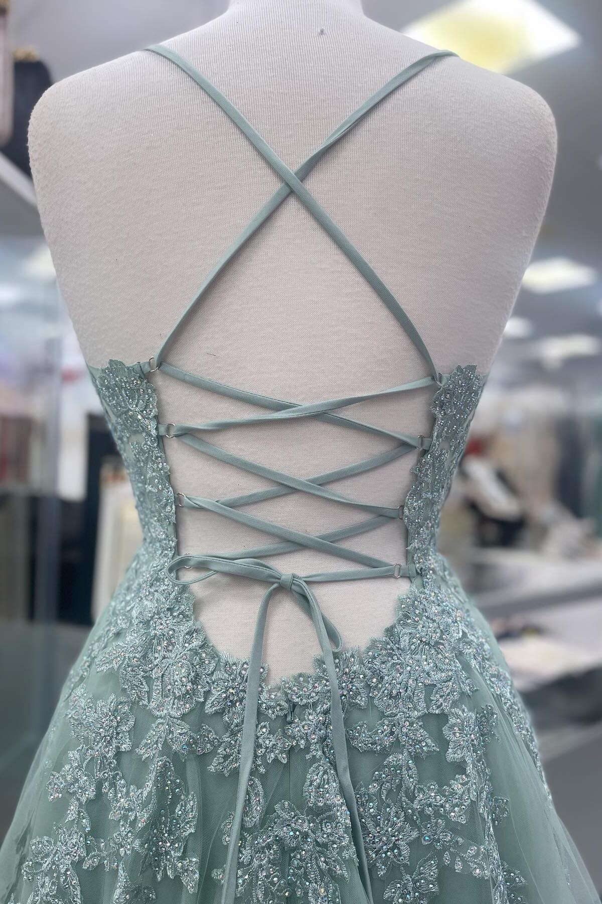 Weitese Spaghetti Straps Sage Green Appliques Tulle Backless Long Formal Dress Prom Dress Prom Dresses Stores - US 2 / UK 6 / EU 32
