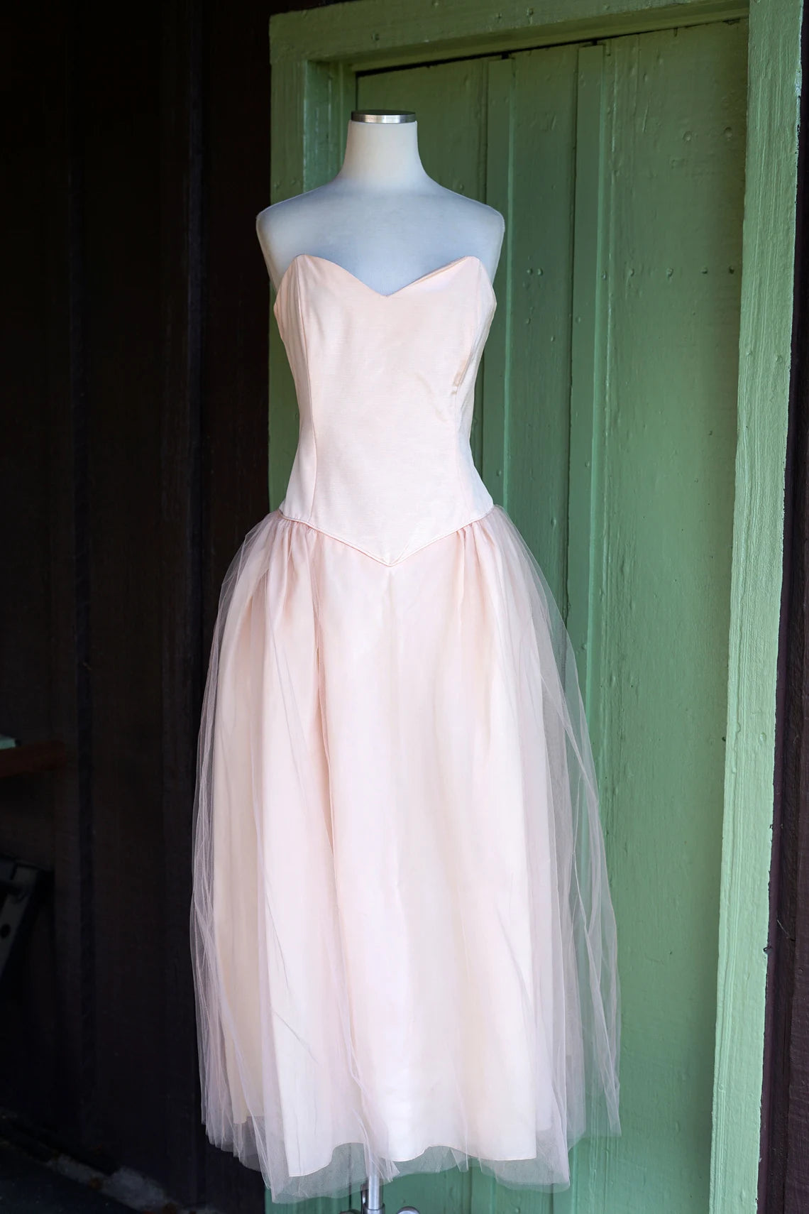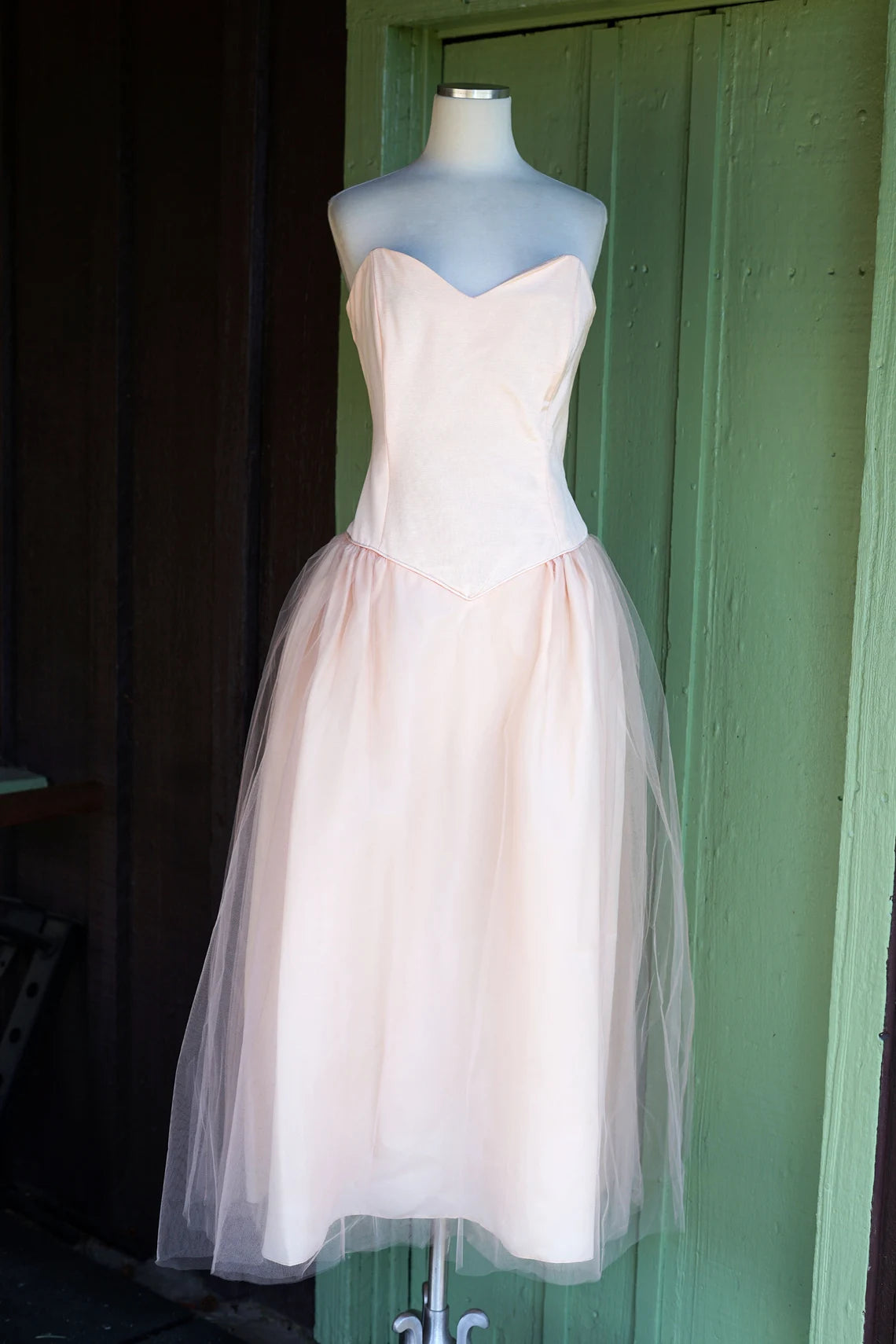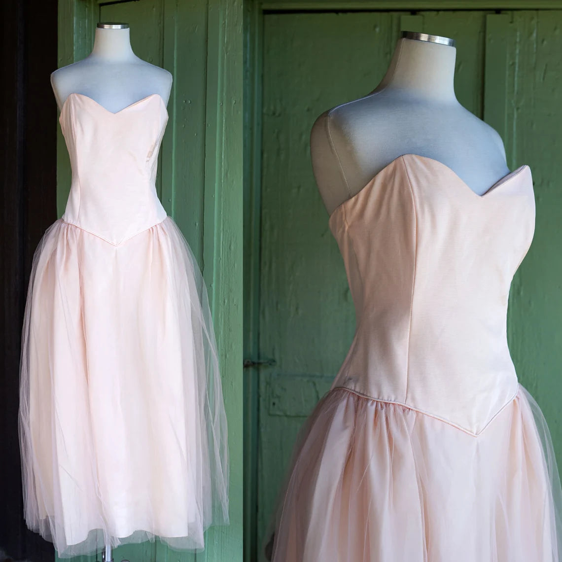 Vestido de fiesta sencillo de tul con corte A, largo hasta la rodilla, sin mangas y sin tirantes - EE. UU. 2 / Reino Unido 6 / UE 32