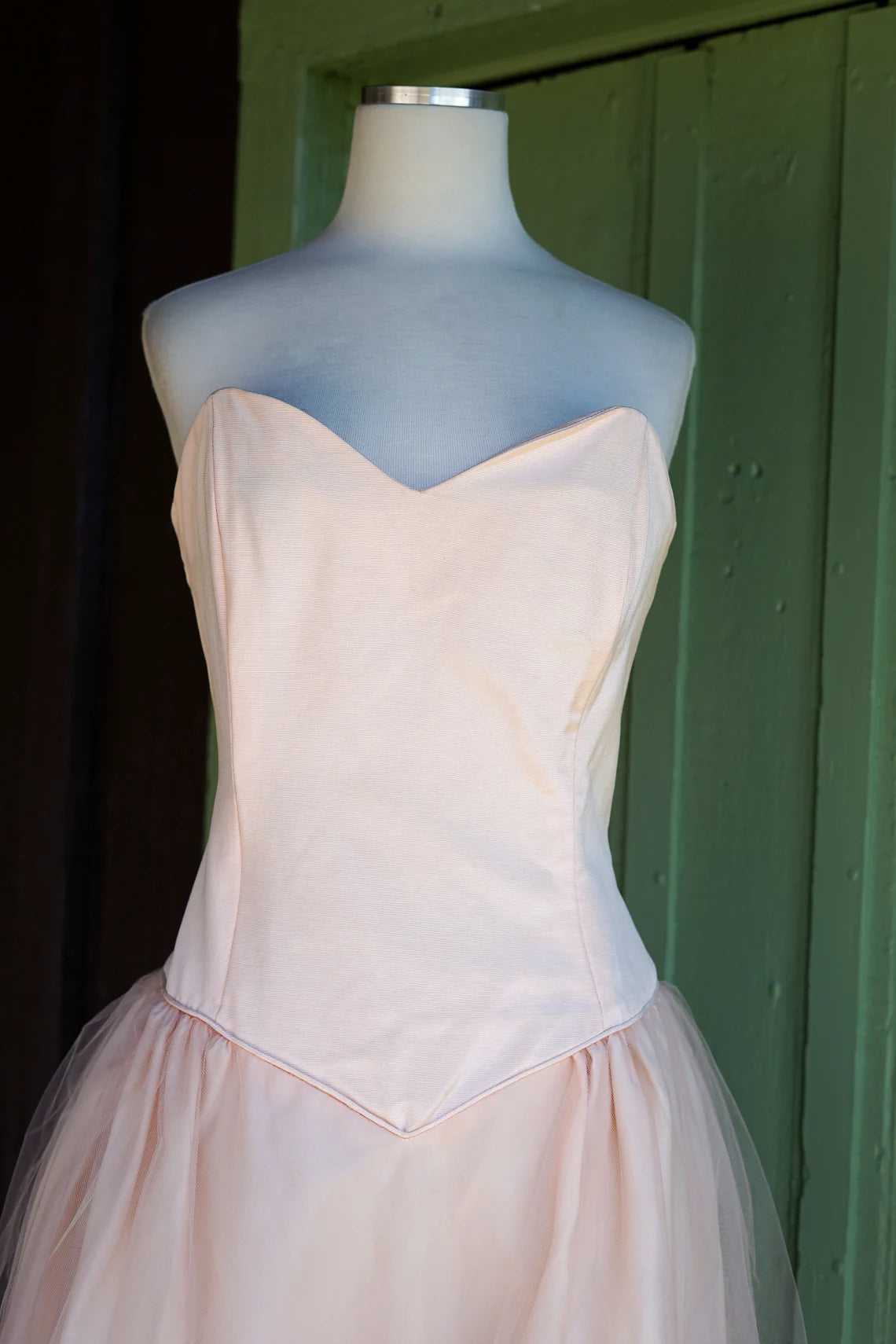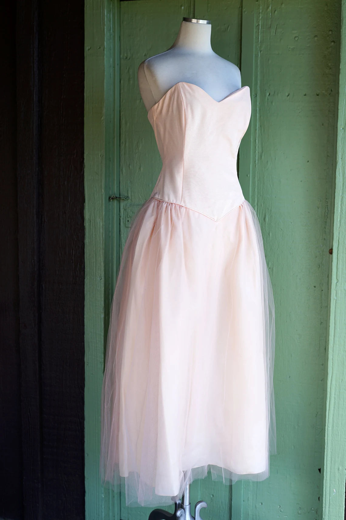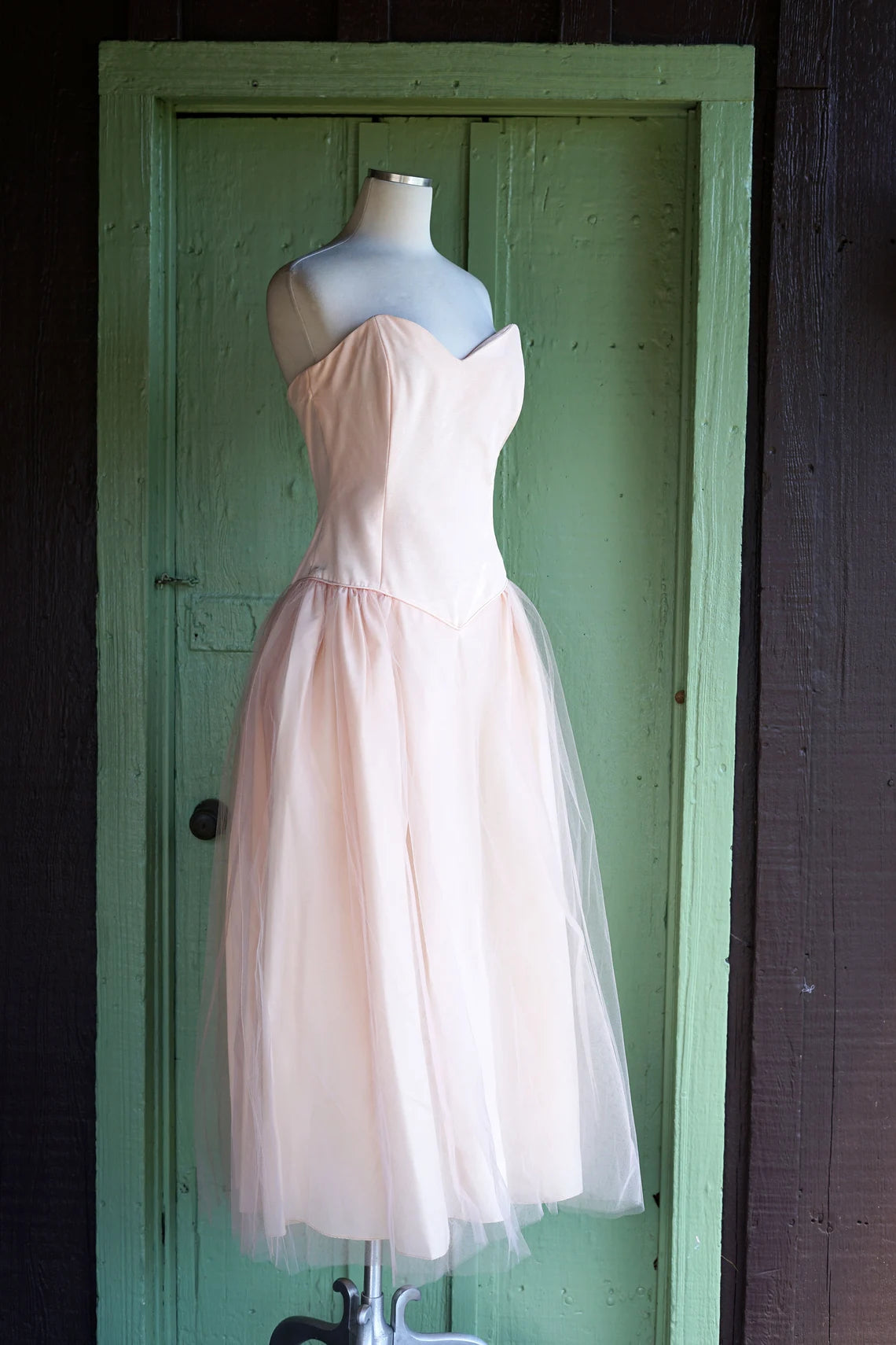 Vestido de fiesta sencillo de tul con corte A, largo hasta la rodilla, sin mangas y sin tirantes - EE. UU. 2 / Reino Unido 6 / UE 32