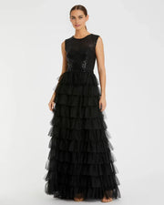 weitese's Elevate your glamorous look with this black sequin and tulle tiered maxi dress. It features a sequin-embellished bodice for sparkling allure, dramatic tiered tulle layers for voluminous charm, and a beaded waist detail for refined sophistication. The combination of textures ensures a showstopping appearance, making it perfect for formal galas, red carpet events, or any occasion where you want to blend opulent style with timeless elegance.