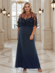 weitese's Elevate your formal look with this plus size navy blue embroidered mesh cape maxi dress. It features intricate embroidery on a sheer mesh cape for elegant allure, a flowing chiffon skirt for graceful movement, and a tailored silhouette for a flattering fit. The sheer detailing adds a touch of sophistication, making it perfect for evening galas, weddings, or any occasion where you want to showcase timeless charm with a blend of refined embroidery and airy texture.