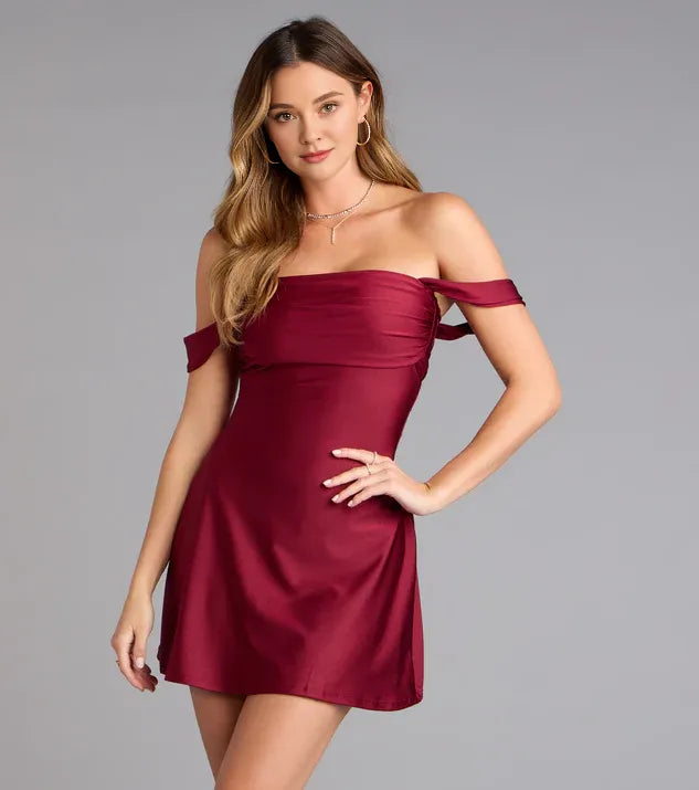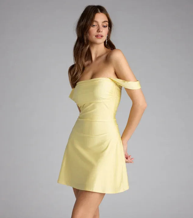 weitese's Simple A-Line/Princess dress features an off-the-shoulder neckline and sleeveless design, creating an elegant yet modern silhouette. Its backless detail adds a touch of allure, while the short-mini length ensures a youthful and playful look perfect for homecoming events. The A-line cut flatters a variety of body shapes, making it a versatile choice for a memorable night.