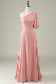 Vestido de dama de honor bohemio de gasa con un solo hombro y cordones en la espalda - Rubor / EE. UU. 2 / Reino Unido 6 / UE 32