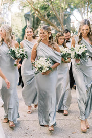 Vestidos formales para mujer/Vestidos de dama de honor negros con abertura y volantes asimétricos de un solo hombro - Azul polvoriento / EE. UU. 2 / Reino Unido 6 / UE 32