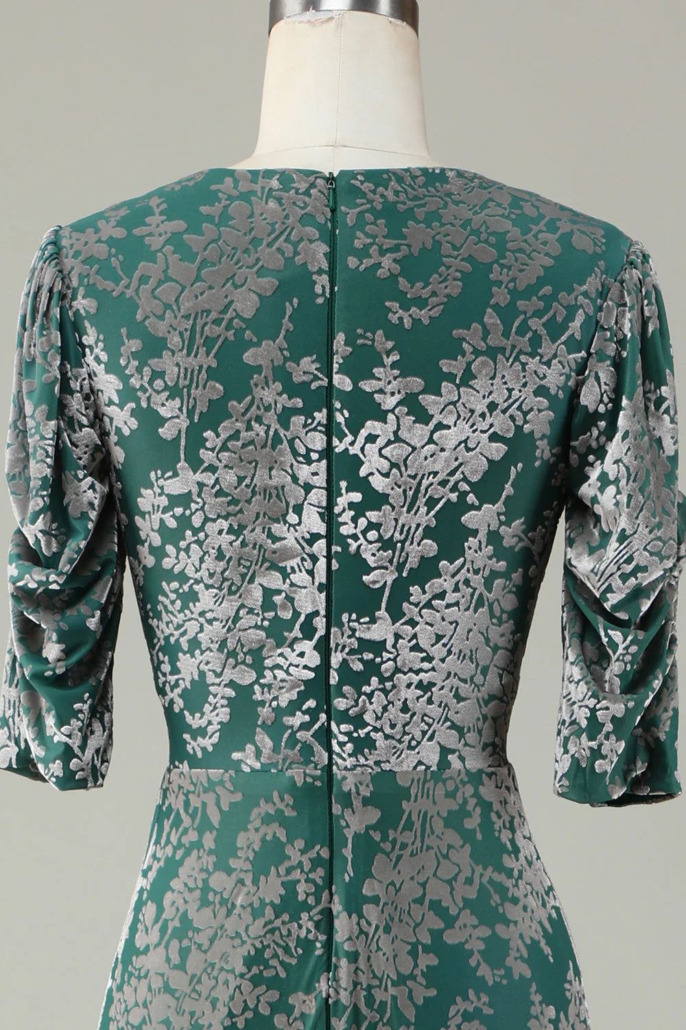 Vestido de dama de honor de terciopelo sirena gris verde con mangas - EE. UU. 2 / Reino Unido 6 / UE 32