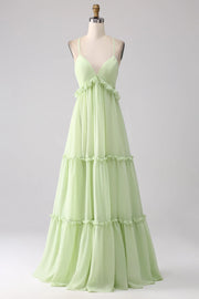 Vestido de dama de honor verde con volantes y espalda con cordones