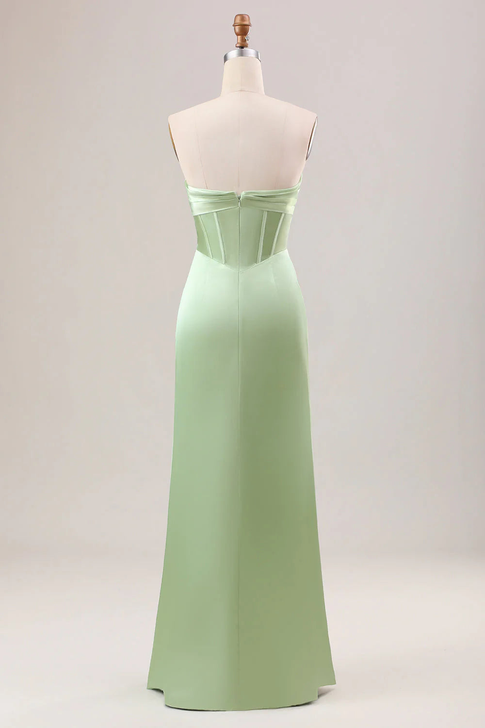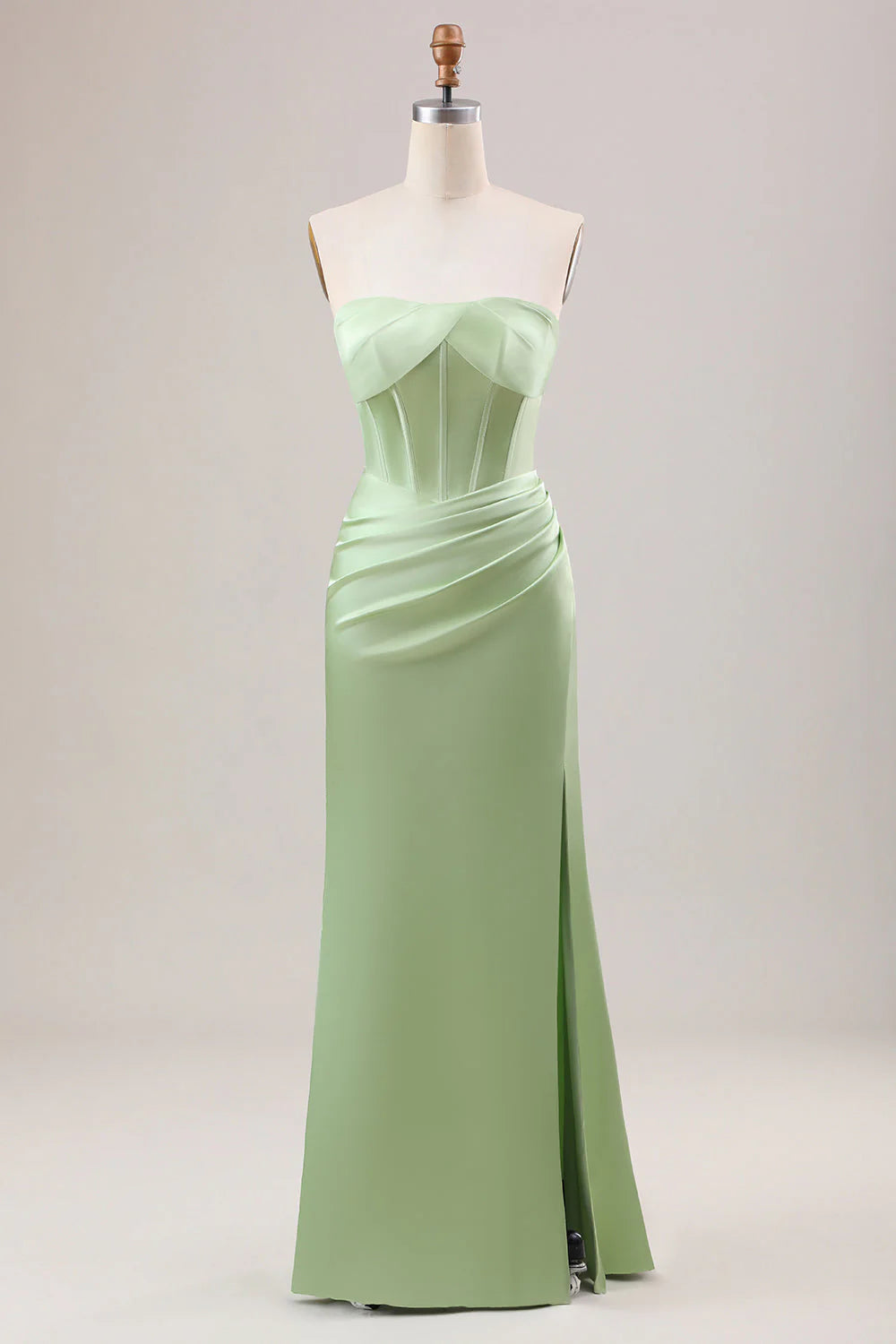 Vestido de dama de honor largo sin tirantes con corsé y abertura