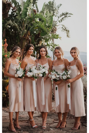 Vestidos de dama de honor sexys sin mangas con tirantes finos y espalda descubierta hasta la rodilla