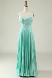 Vestido largo plisado de dama de honor con tirantes finos