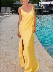 Vestido largo con escote en V, espalda anudada y abertura