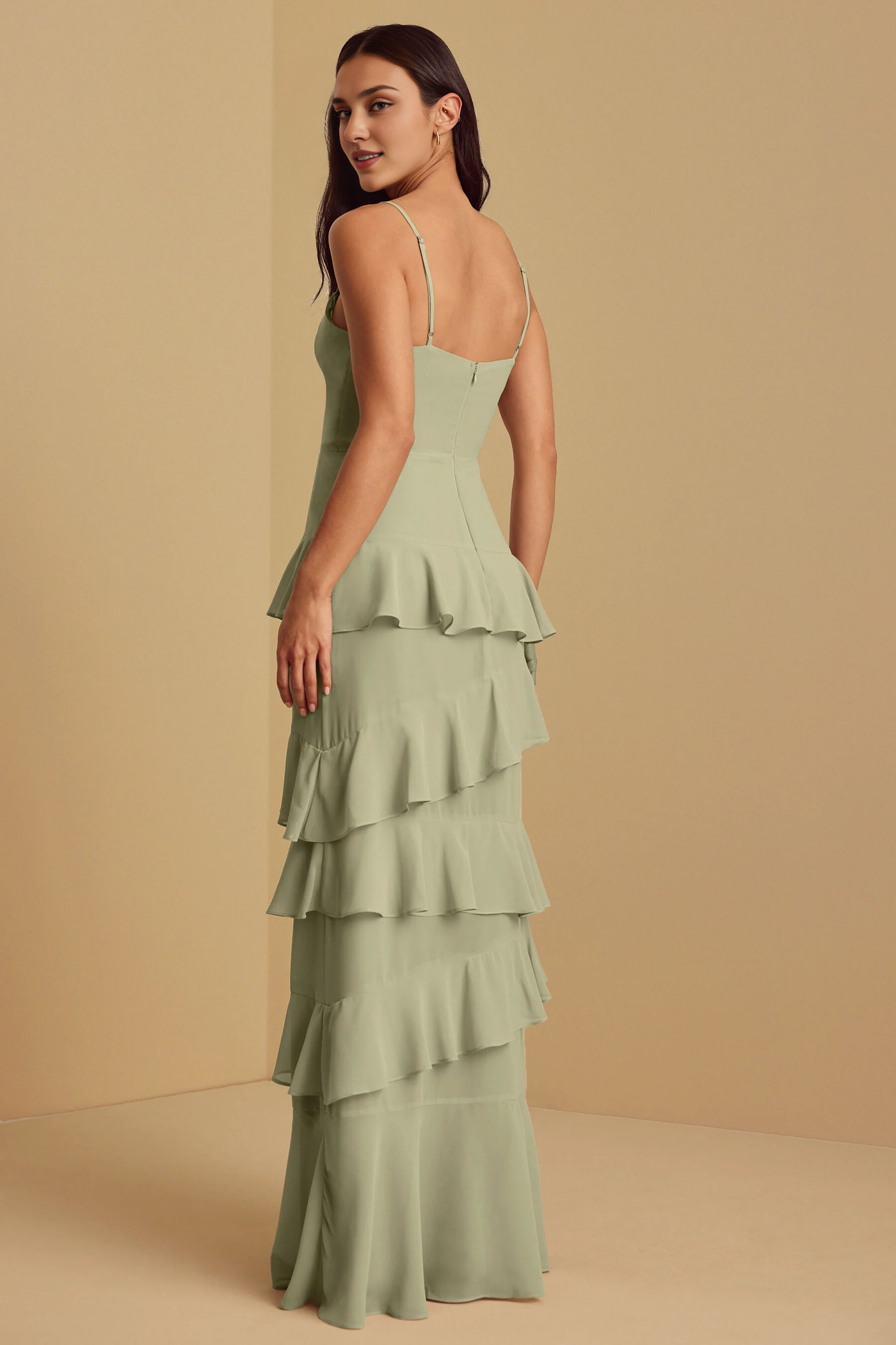 Vestidos formales Weitese sin mangas de gasa con tirantes finos hasta el suelo, vestidos de dama de honor, tiendas con vestidos de fiesta con capas - EE. UU. 2 / Reino Unido 6 / UE 32