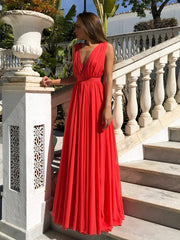 Vestido Weitese rojo de corte A, escote en V, largo hasta el suelo, de gasa, sin espalda, largo, para fiesta de graduación, formal, de noche.