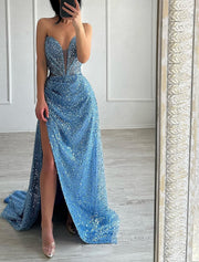 Vestido de noche elegante de corte A, formal, largo hasta el suelo, sin mangas, sin tirantes, con lentejuelas