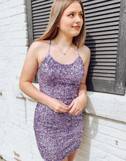 Vestido de fiesta ajustado con espalda cruzada y lentejuelas
