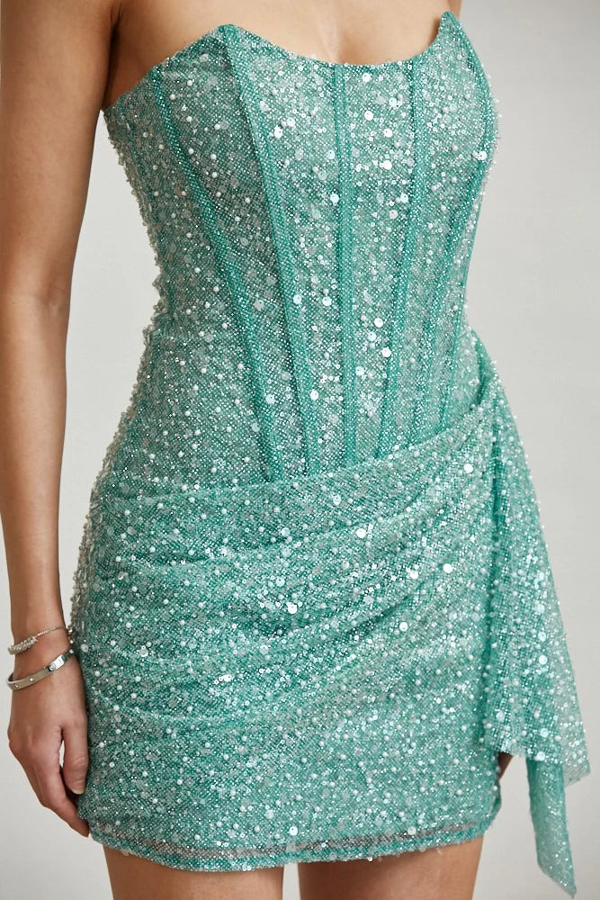 Glitter Sheath/Column Strapless Sleeveless Zipper Up Short-Mini Homecoming Dress - US 2 / UK 6 / EU 32