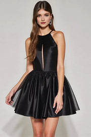 Vestido Weitese negro de corte A, con cuello halter y abertura en la espalda, corto, sin mangas y con escote en V para fiesta de bienvenida. - EE. UU. 2 / Reino Unido 6 / UE 32