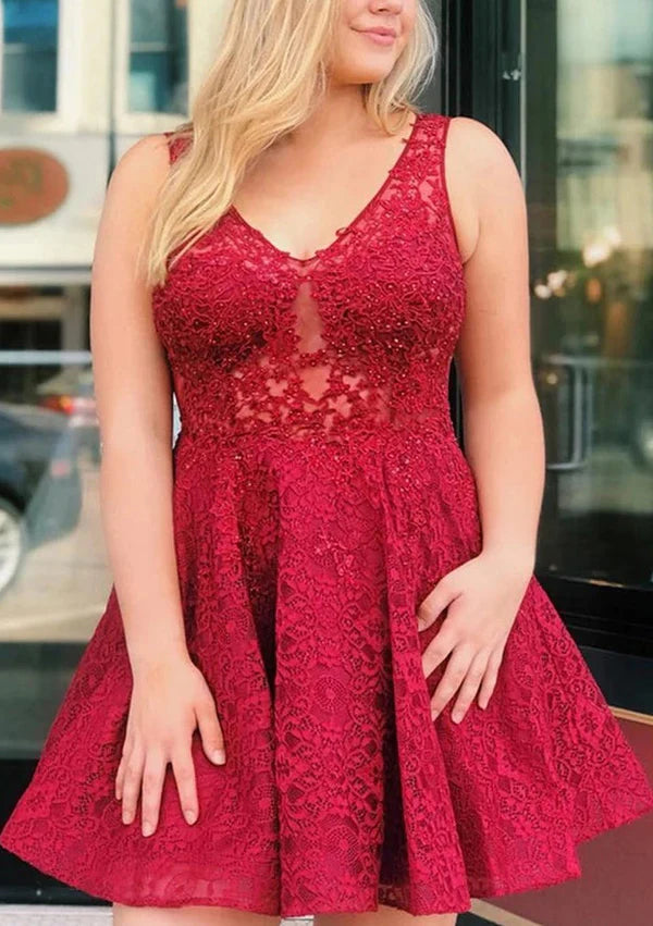 Vestido Weitese elegante con escote en V, encaje con cuentas, vestido corto de fiesta de bienvenida, corte A, cremallera, sin mangas