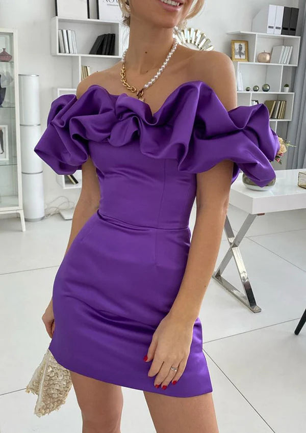 Vestido Weitese de satén con hombros descubiertos y volantes para fiesta de bienvenida, corte tubo, sin mangas
