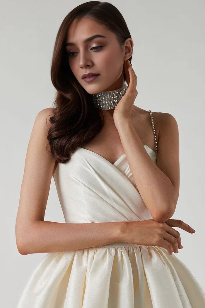 Vestido Weitese con escote corazón, tirantes finos, plisado, satén, corte A, minivestido de fiesta sin mangas para regreso a casa - EE. UU. 2 / Reino Unido 6 / UE 32