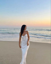 Vestido de fiesta de sirena con tirantes finos y corte A
