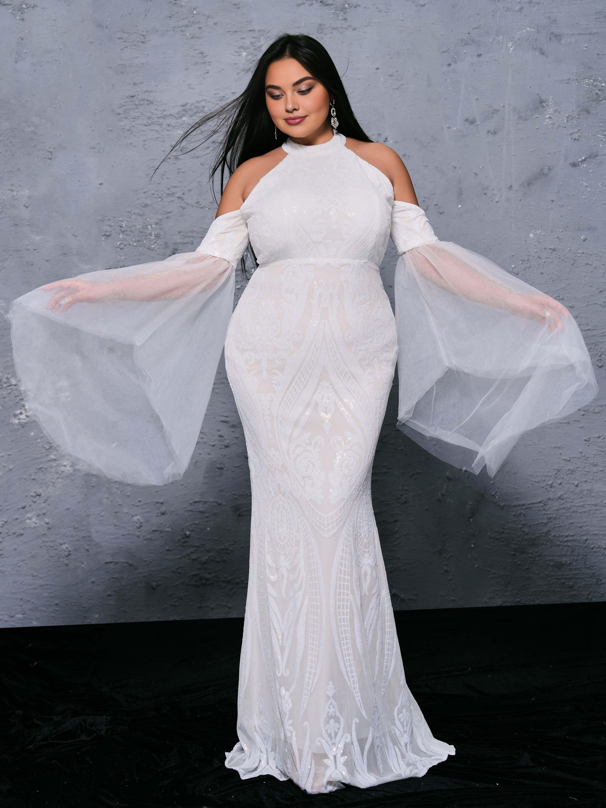 The Charming Mermaid Cold Shoulder Flutter Sleeve Zipper Up Prom Dress For Sale does not include any accessories shown in the picture, such as a cape/jacket, gloves, veil, handbag, etc.