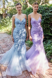 Vestidos formales de mujer, estilo sirena/princesa, con apliques florales, cordones, tirantes finos, sin mangas, espalda descubierta, largo hasta el suelo, vestido de fiesta, tiendas de vestidos de fiesta - Lavanda / EE. UU. 2 / Reino Unido 6 / UE 32