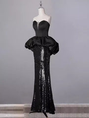 Vestidos de fiesta largos negros con lentejuelas y escote corazón y sirena con hombros descubiertos - EE. UU. 2 / Reino Unido 6 / UE 32