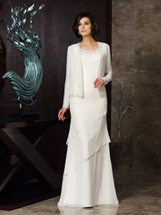 Vestidos de madre de la novia de gasa larga, sin mangas, con escote redondo y cuentas