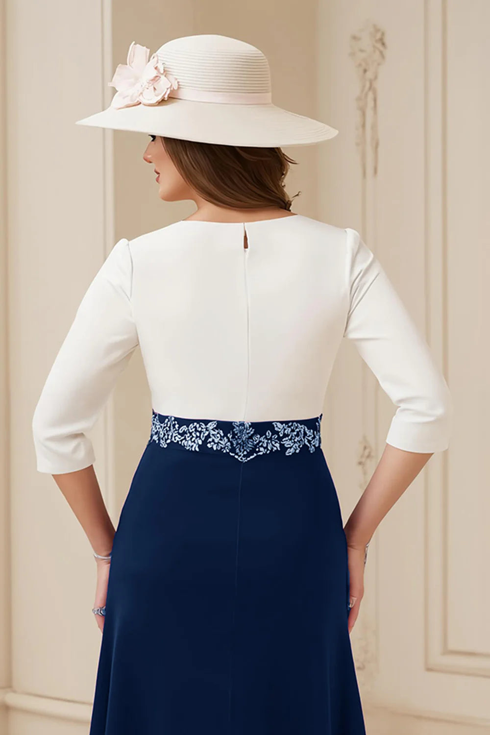weitese's Elevate your formal look with this white and navy blue midi dress. It features a classic white top with 3/4 sleeves for elegant charm, a navy blue skirt for bold style, and an embroidered waistband for intricate detail. The midi length offers a polished silhouette, making it perfect for weddings, garden parties, or any occasion where you want to showcase timeless elegance with a touch of refined embroidery.