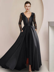 Monos Weitese, vestido de madre de la novia, vestido formal para invitados de boda, elegante, escote en V, largo hasta el suelo, encaje de satén, manga larga con apliques - EE. UU. 2 / Reino Unido 6 / UE 32