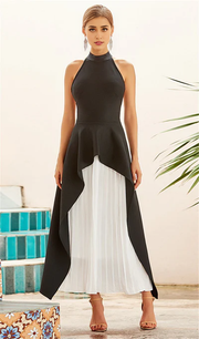 Vestido de fiesta de corte A con cuello semialto, sin mangas y espalda descubierta