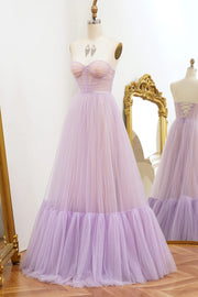 Vestido de fiesta largo sin tirantes de tul con corte A y hombros descubiertos