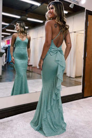 Vestido de fiesta de sirena con lazo en la espalda y volantes en la espalda