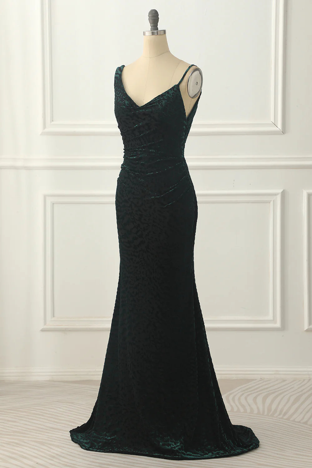 Vestido de fiesta verde oscuro de sirena de terciopelo sin espalda