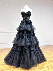 Vestido de fiesta largo de tul con escote en forma de corazón y encaje negro