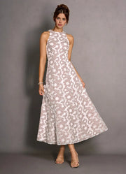 weitese's Elevate your romantic look with this white floral lace halter neck midi dress. It features intricate floral lace detailing for delicate allure, a halter neckline for refined charm, and an open back with flowy A-line silhouette for sophisticated flair. The timeless white hue ensures a versatile finish, making it perfect for weddings, formal events, or any occasion where you want to blend classic elegance with feminine, artistic design.